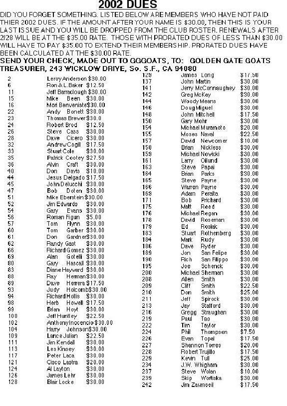 2002 GOLDEN GATE GOATS DUES
