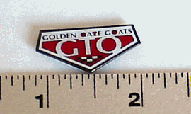 WELL FOLKS THE GOLDEN GATE GOATS HAT-LAPEL PINS HAVE ARRIVED. JUST IN TIME FOR CHRISTMAS. SIZE IS 1 1/8 INCHES. PIN ARE IN THE SHAPE & SAME COLORS AS OUR LOGO AND HAVE EPOXY DOME THAT COVERS & PROTECTS THE PIN. PRICE IS A MODEST $3.00 EACH. BE THE FIRST ON YOUR BLOCK TO OWN ONE!